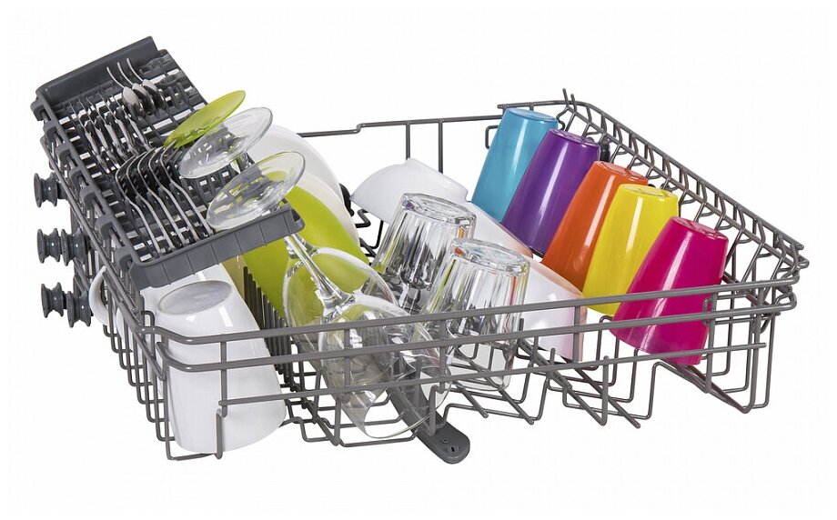Посудомоечная машина может иметь различные аксессуары: лоток для столовых приборов, держатель для бокалов и др. |