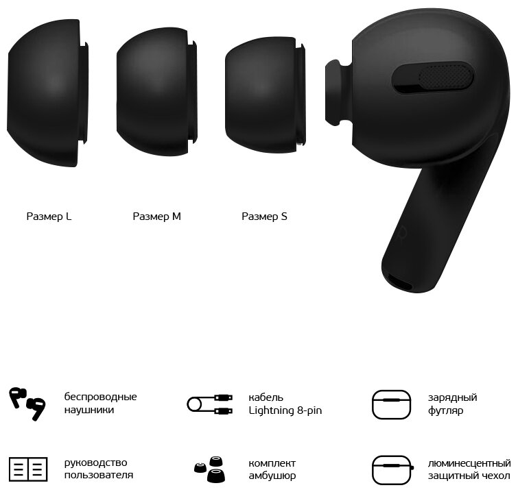 | Наименование | TWS-Air Pro Black с беспроводной зарядкой |