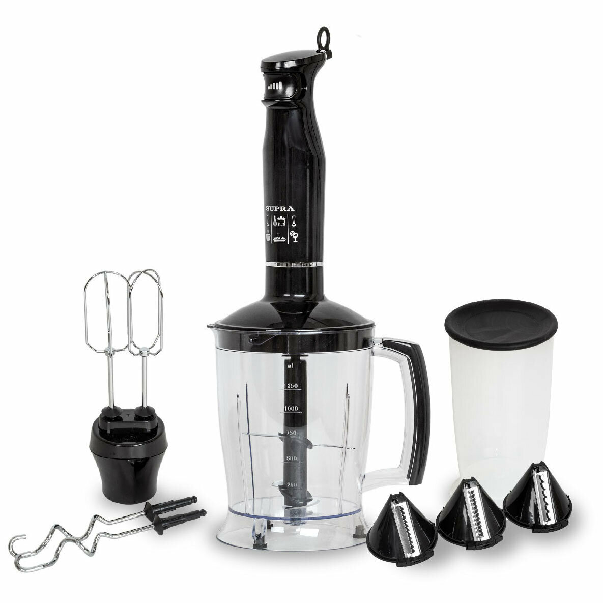 | Насадки | венчик для взбивания, для замешивания теста, измельчитель, для замешивания теста, с венчиком; с мерным стаканом |