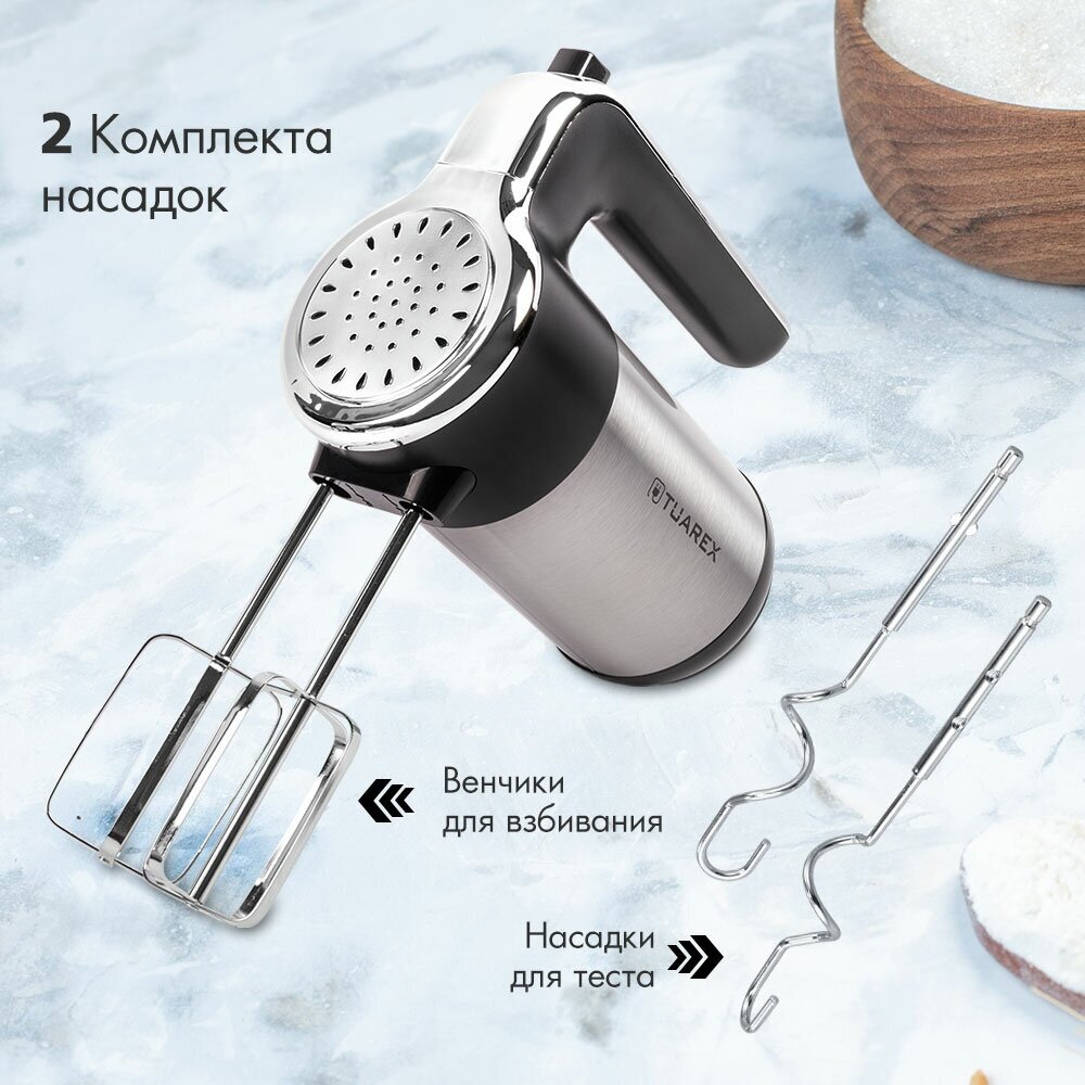| Насадки | венчик для взбивания, крючки для замешивания теста |