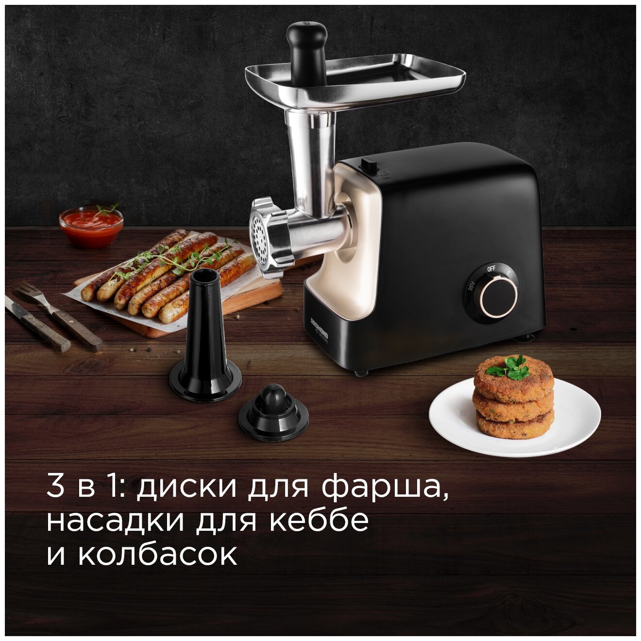 | Насадки | насадка для кеббе, насадка для приготовления колбас |