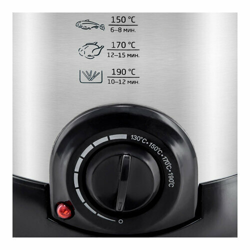 Дополнительная информация | комплектация: фритюрница, крышка, корзина, ручка корзины, руководство по эксплуатации, гарантийный талон; ёмкость чаши: 2.4 л; рабочий объем чаши: 0.75-1 л; регулировка температуры: 130-190°C; длина сетевого шнура: 92 см |