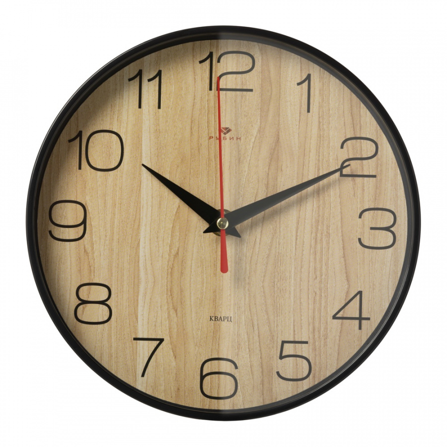 Часы настенные Рубин круг d=19,5см, корпус черный,"Текстура дерева"