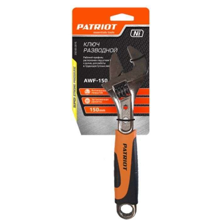 Ключ разводной PATRIOT AWF-250, 250мм обрезиненная ручка