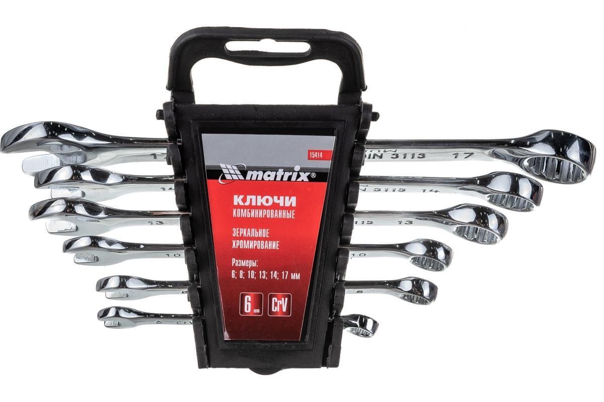 Набор комбинированных ключей MATRIX 6-17 мм, 6шт, CrV, полированный хром