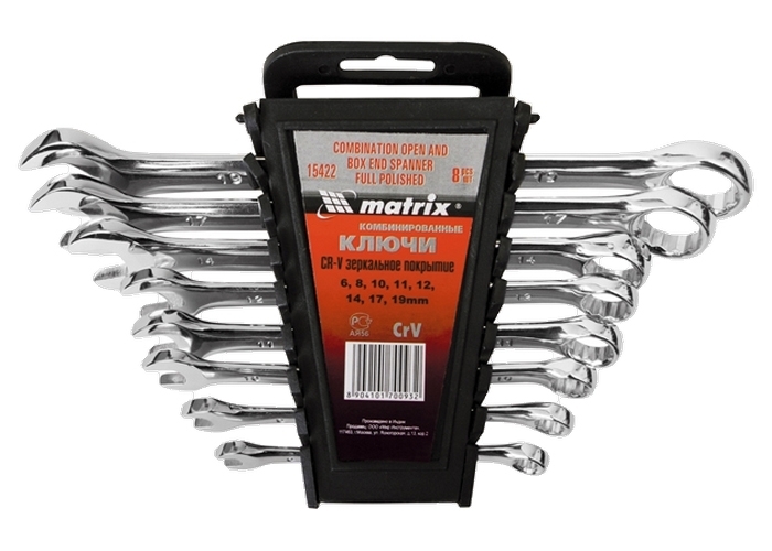 Набор комбинированных ключей MATRIX 8-19 мм, 8шт, CrV, полированный хром