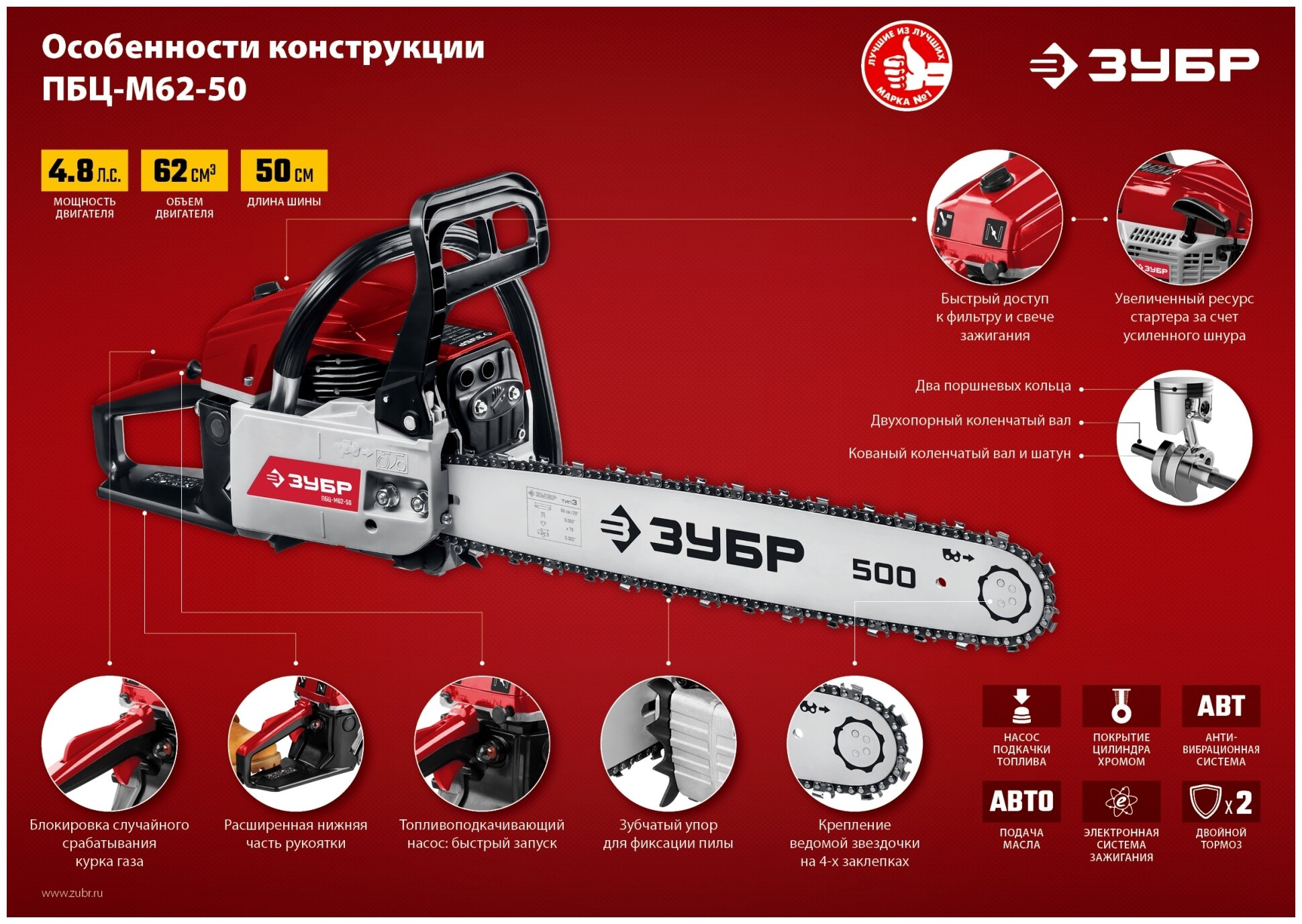 Бензопила Зубр ПБЦ-М62-50