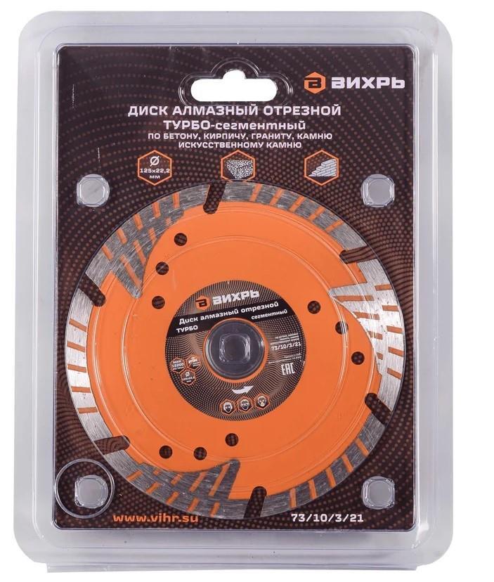 Диск отрезной алмазный Турбо-сегментный ВИХРЬ 125х22,2 сухая резка